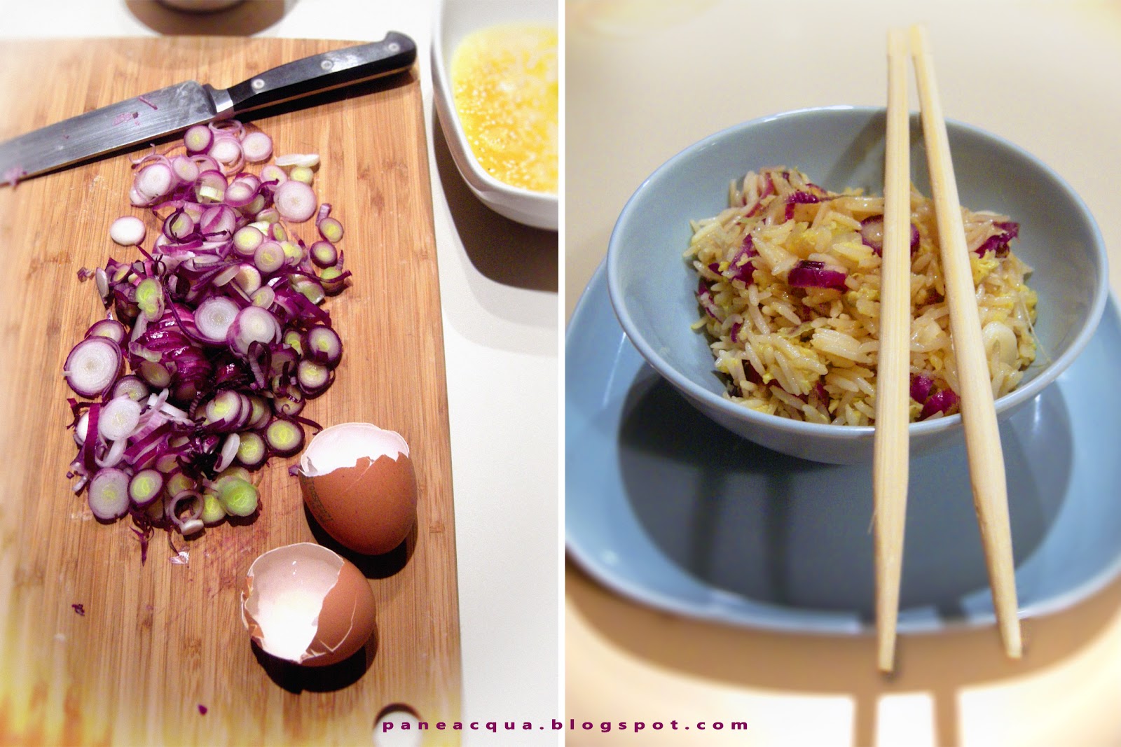 Tagliate a fettine sottili i cipollotti rossi
